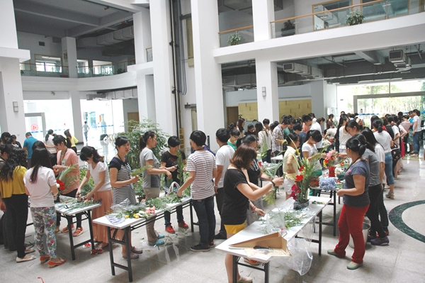 为丰富员工业余文化生活,提高华瑞同仁的文化内涵与艺术品位,更好地激发员工对工作生活的热爱和对事业的美好追求,公司于9月9日在本部一楼大厅举办了第四届“花语·花香”插花比赛。本届插花比赛共吸引了17支队伍参赛,参赛队数量创历年之最。