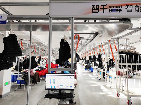 走进生产厂区,宽敞明亮的厂房豁然开朗。自动裁床高速运转,完成精准裁剪;智能吊挂系统在空中轨道上往返穿梭,将裁片源源不断输送到车缝车间;后整车间,整烫、质检、包装等工序有条不紊展开;AGV(Automated Guided Vehicl,又称自动导引运输车)具有更高的运输速度和准确性,显著提高物料流转的效率和准确性。一件件款式新颖、做工精细的服装在流水线上逐步成型,经严格检验后整齐打包,即将发往全国各地市场。